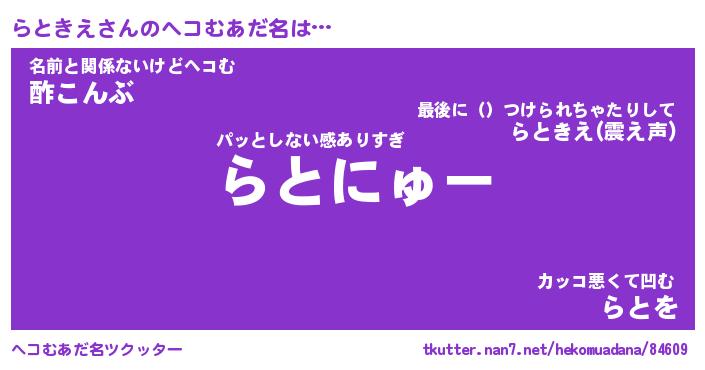 | 胡散臭い通販商品みたいなあだ名 | 『必ず成功する水晶球…その名も「らときえ」』 |