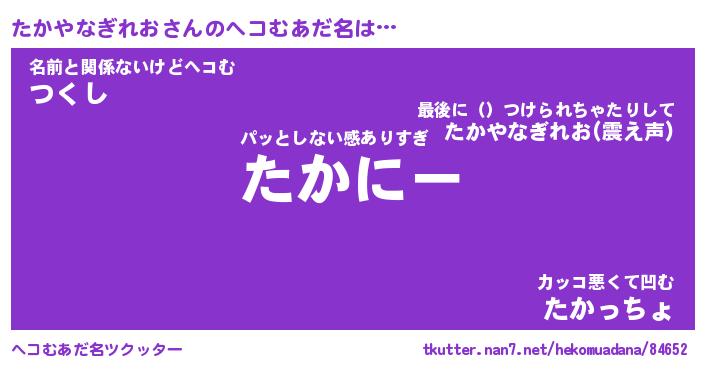 | 2回繰り返すあだ名 | 『たかたか』『たたかか』『おやおや』 |