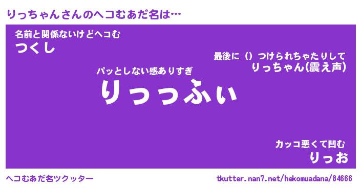 | ファンタジー風あだ名 | 『リッフェル』『エターナルリッチャンー』 |