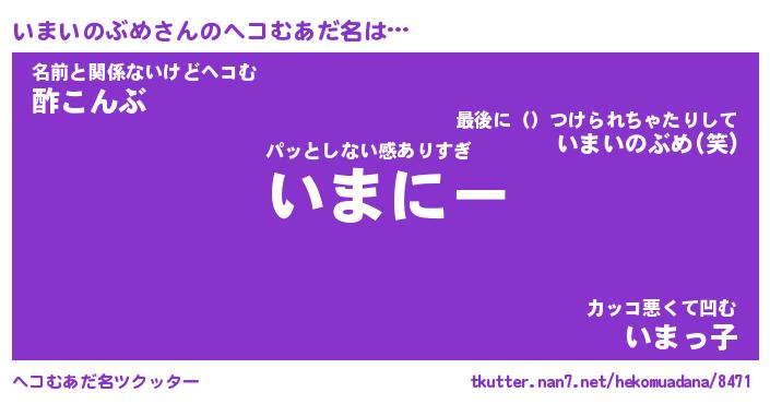 | 男性向けラノベタイトル風あだ名 | 『いまいのぶめの憂鬱』 |