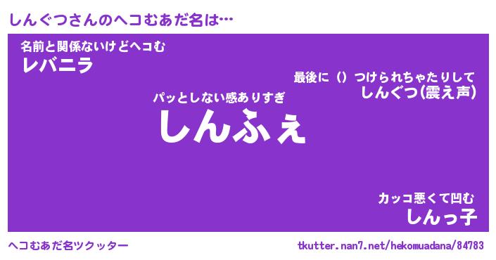 | 2回繰り返すあだ名 | 『しんしん』『ししんん』『へらへら』 |