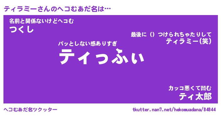 | ファンタジー風あだ名 | 『ティフェル』『エターナルティラミーー』 |