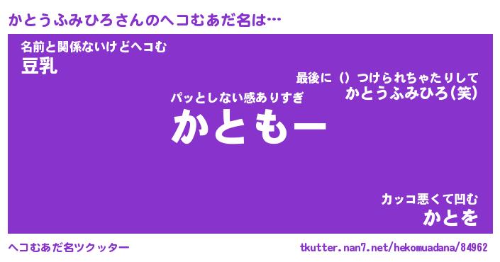 | ヒーロー風カッコイイあだ名 | 『スーパーカトウフミヒロ』 |