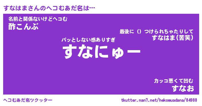 | ヒーロー風カッコイイあだ名 | 『スーパースナハマ』『暗黒騎士スナ』 |