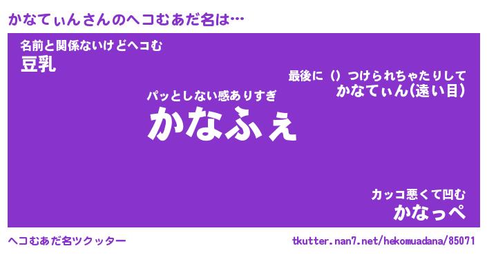 | ファンタジー風あだ名 | 『カナフェル』『エターナルカナティンー』 |