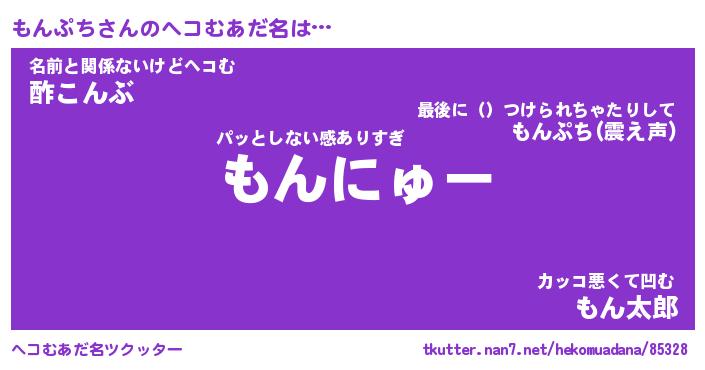 | 男性向けラノベタイトル風あだ名 | 『もんぷちの憂鬱』 |
