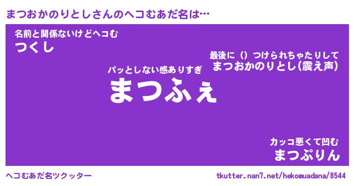 | 男性向けラノベタイトル風あだ名 | 『まつおかのりとしの憂鬱』 |