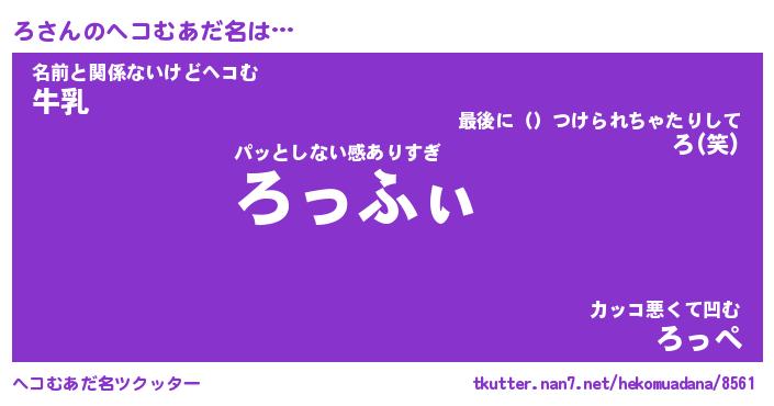 | 意味不明あだ名 | 『ペロリンろ』『ろフォーエバー』 |