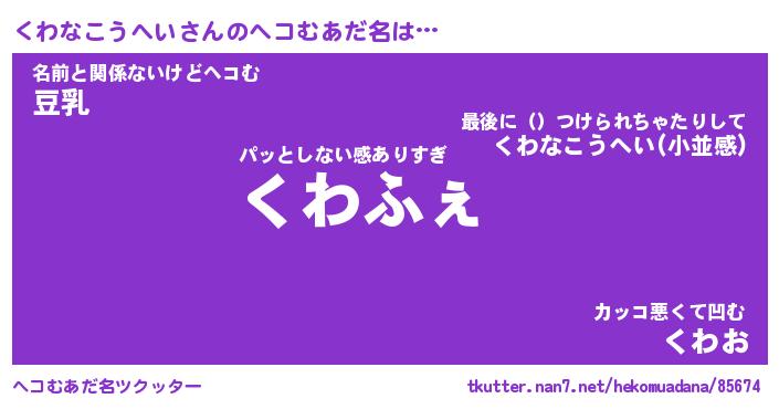 | ヒーロー風カッコイイあだ名 | 『スーパークワナコウヘイ』 |