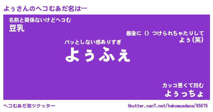 | ポケモン風あだ名 | 『ヨゥチュウ』『ヨゥダネ』『ヒヨゥ』 |