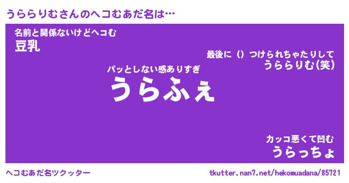 | ファンタジー風あだ名 | 『ウラフェル』『エターナルウララリムー』 |