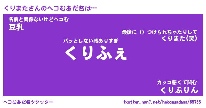 | 意味不明あだ名 | 『ペロリンくりまた』『永久保存くりまた』 |