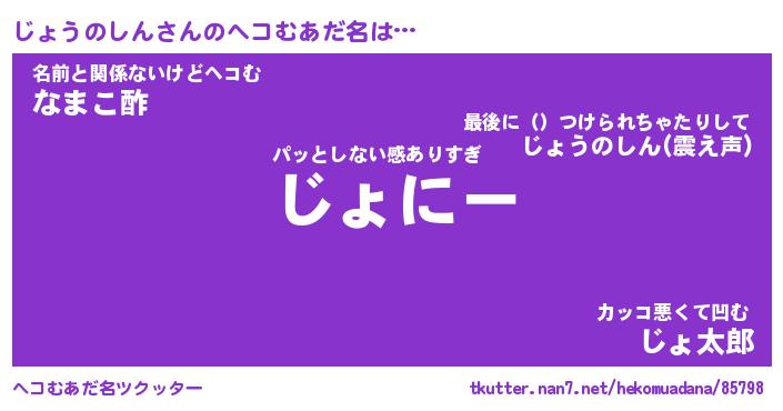 | 男性向けラノベタイトル風あだ名 | 『じょうのしんの憂鬱』 |