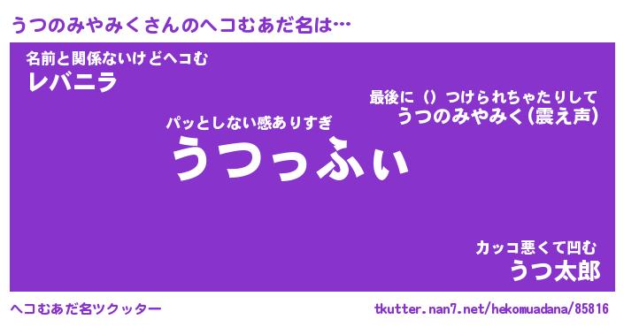 | 意味不明あだ名 | 『ペロリンうつのみやみく』 |