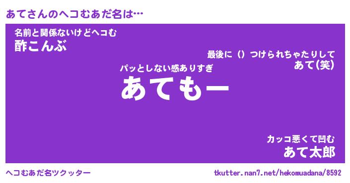 | 男性向けラノベタイトル風あだ名 | 『あての憂鬱』 |