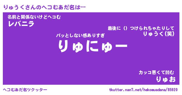| 男性向けラノベタイトル風あだ名 | 『りゅうくの憂鬱』 |