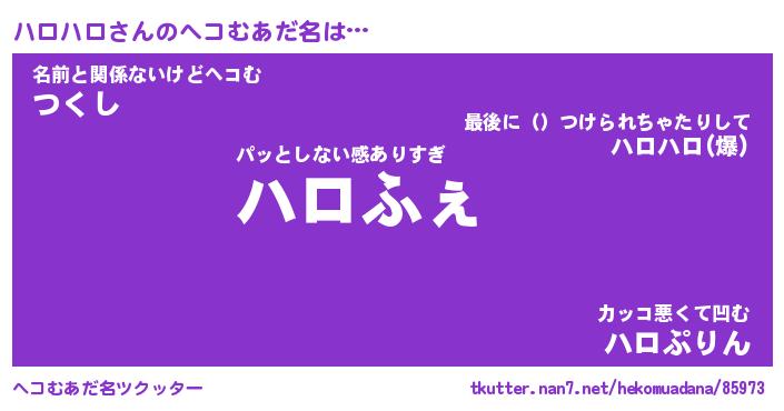 | ファンタジー風あだ名 | 『ハロフェル』『エターナルハロハロー』 |