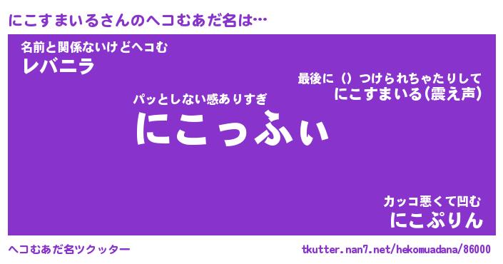 | 自動車の名前っぽいあだ名 | 『ニコティマ』『ニスラー』『ニント』 |