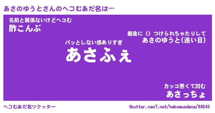 | ヒーロー風カッコイイあだ名 | 『スーパーアサノユウト』『幻影騎士アサ』 |