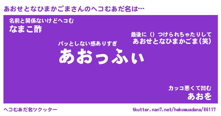 | 胡散臭い通販商品みたいなあだ名 | 『必ず成功する霊験あらたかなお札…その名も「あおせとなひまかごま」』 |