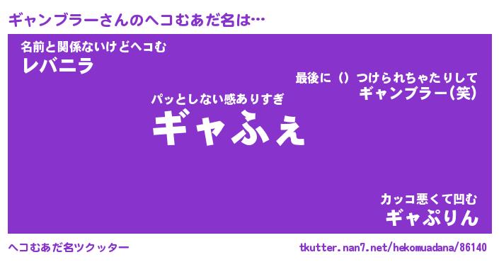 | 2回繰り返すあだ名 | 『ギャギャ』『ギギャャ』『ぬるぬる』 |