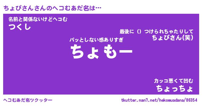 | ファンタジー風あだ名 | 『チョフェル』『エターナルチョピサンー』 |
