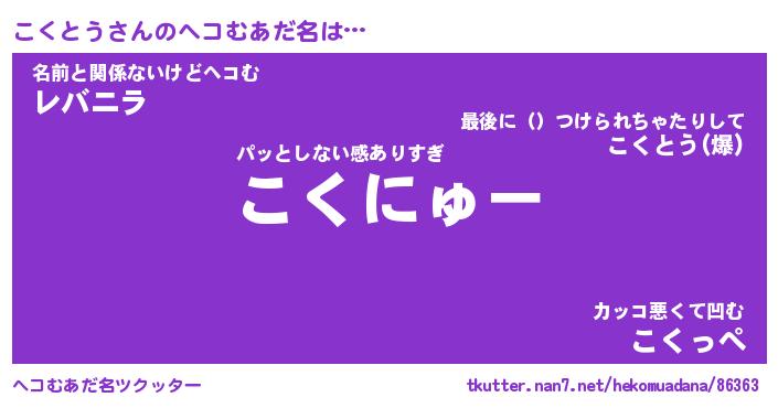 | ポケモン風あだ名 | 『コクチュウ』『コクトダネ』 |