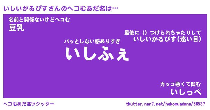 | 意味不明あだ名 | 『ペロリンいしいかるぴす』 |