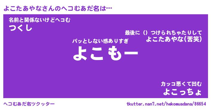 | 恥ずかしいあだ名 | 『プリティーよこたあやな』『よこっちょ』 |