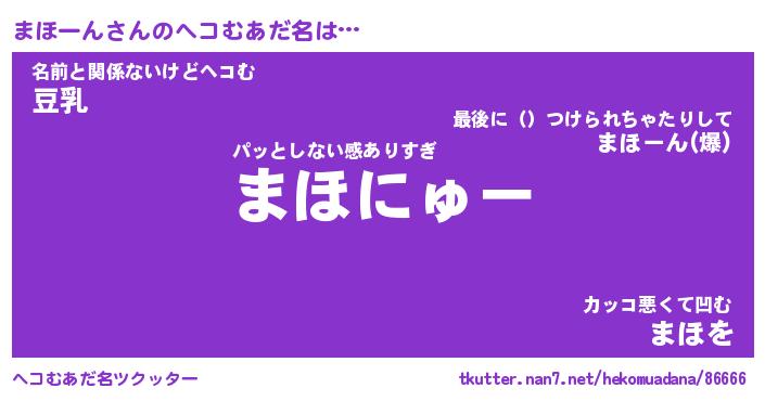 | 意味不明あだ名 | 『ペロリンまほーん』『永久保存まほーん』 |
