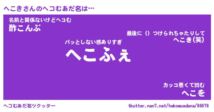 | 自動車の名前っぽいあだ名 | 『ヘコティマ』『ヘスラー』『ヘンR』 |