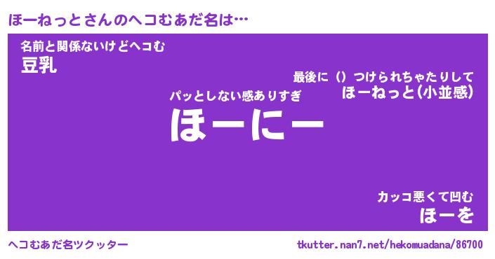 | ポケモン風あだ名 | 『ホーチュウ』『ホーネダネ』 |