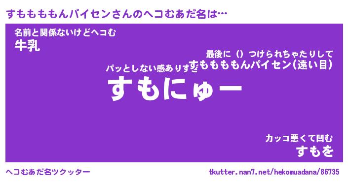 | 2回繰り返すあだ名 | 『すもすも』『すすもも』『ぬめぬめ』 |