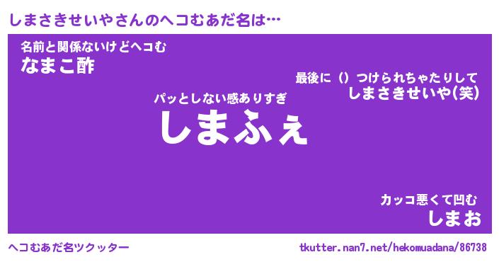 | 男性向けラノベタイトル風あだ名 | 『しまさきせいやの憂鬱』 |
