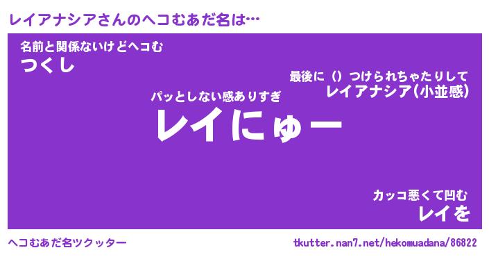 | 恥ずかしいあだ名 | 『プリティーレイアナシア』『レイっちょ』 |