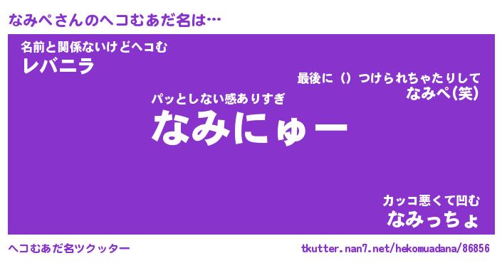 | ヒーロー風カッコイイあだ名 | 『スーパーナミペ』『ウルトラなみぺマン』 |