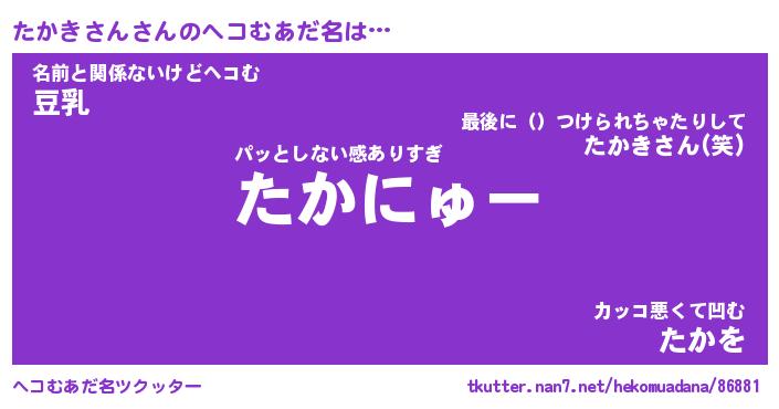 | ファンタジー風あだ名 | 『タカフェル』『エターナルタカキサンー』 |