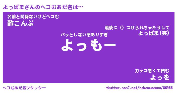 | 意味不明あだ名 | 『ペロリンよっぱま』『永久保存よっぱま』 |