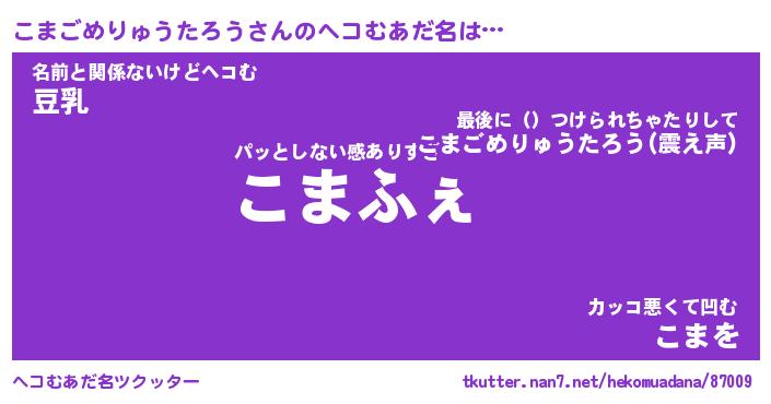 | ヒーロー風カッコイイあだ名 | 『スーパーコマゴメリュウタロウ』 |