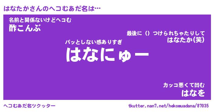 | ファンタジー風あだ名 | 『ハナフェル』『エターナルハナタカー』 |