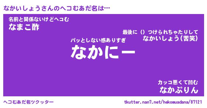 | ヒーロー風カッコイイあだ名 | 『スーパーナカイショウ』『銀牙騎士ナカ』 |