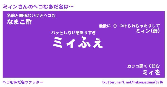 | ヒーロー風カッコイイあだ名 | 『スーパーミィン』『ウルトラミィンマン』 |