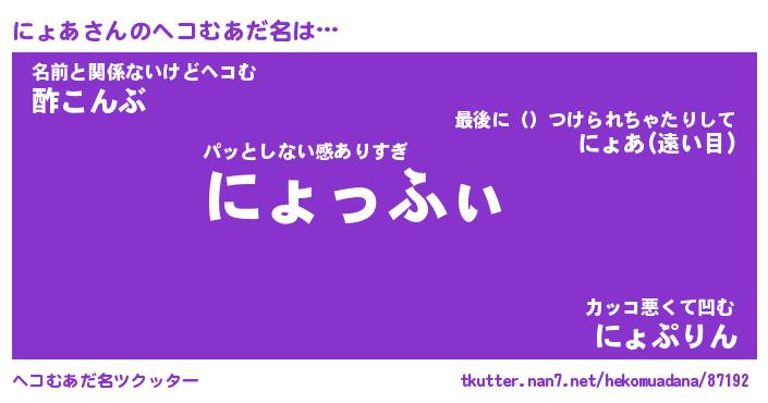 | ヒーロー風カッコイイあだ名 | 『スーパーニョア』『ウルトラにょあマン』 |