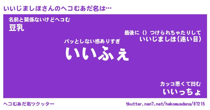 | 欧米人風あだ名 | 『マイケルいいじましほ』 |