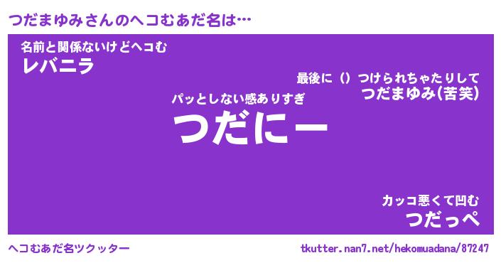 | ファンタジー風あだ名 | 『ツダフェル』『エターナルツダマユミー』 |