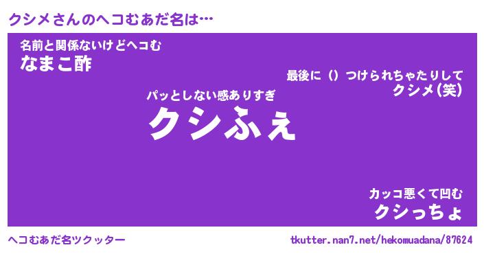 | ファンタジー風あだ名 | 『クシフェル』『エターナルクシメー』 |