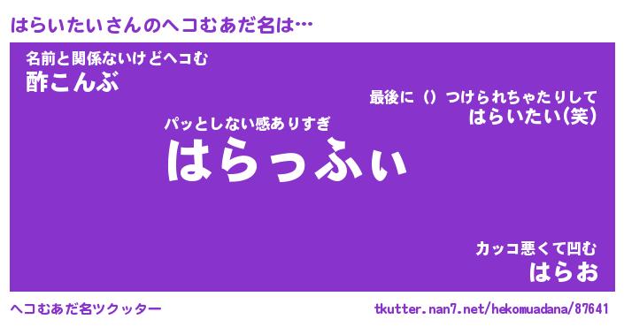 | ポケモン風あだ名 | 『ハラチュウ』『ハライダネ』 |