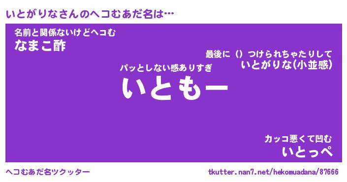 | 自動車の名前っぽいあだ名 | 『イトティマ』『イスラー』『デミイ』 |