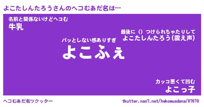 | 男性向けラノベタイトル風あだ名 | 『よこたしんたろうの憂鬱』 |