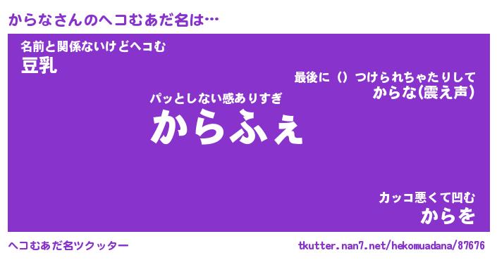 | ヒーロー風カッコイイあだ名 | 『スーパーカラナ』『ウルトラからなマン』 |